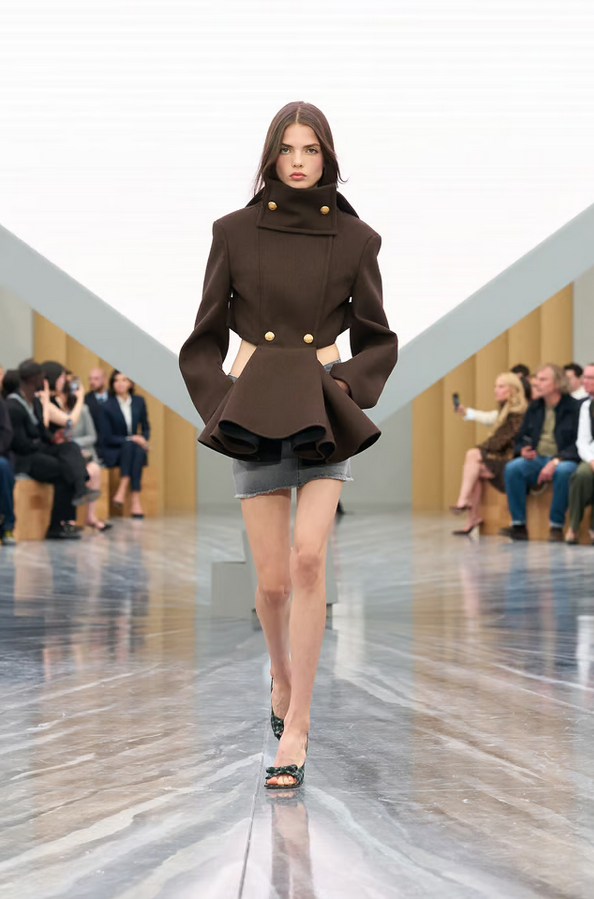 • Denim and leather are reworked: jackets, minis, skirts, often paired with structural tailoring.