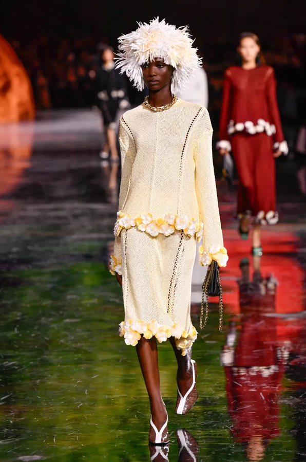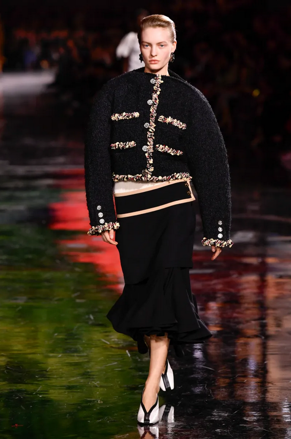 • Camellias (Chanel’s signature flower) and chain motifs are reworked, scattered, or embedded in knitwear, breathing new life into iconic elements.