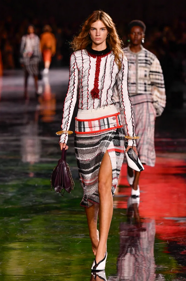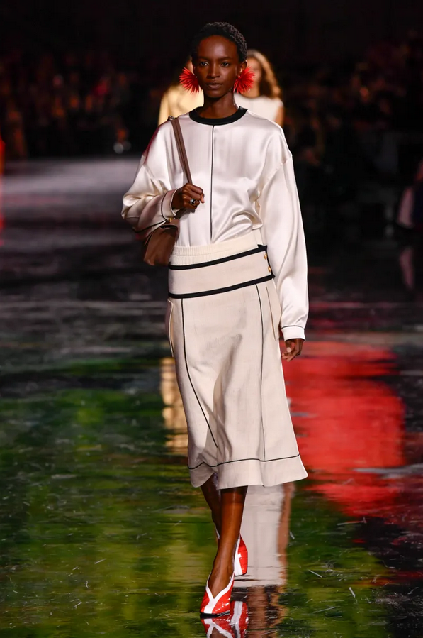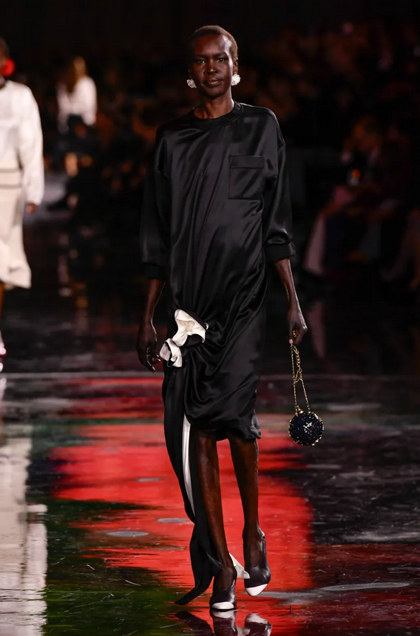 • Technical accomplishment: mixing fabrics, deconstructed elements, handbags reimagined — all cohere.
