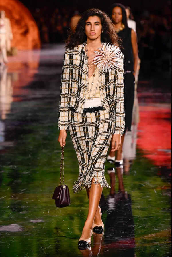 With his inaugural SS26 collection, Matthieu Blazy has launched a new era for Chanel — one that respects its codes (tweed, jersey, bags) while boldly reinterpreting them. The show presents a vision of Chanel that is cosmic, textured, lived-in, and fluid.