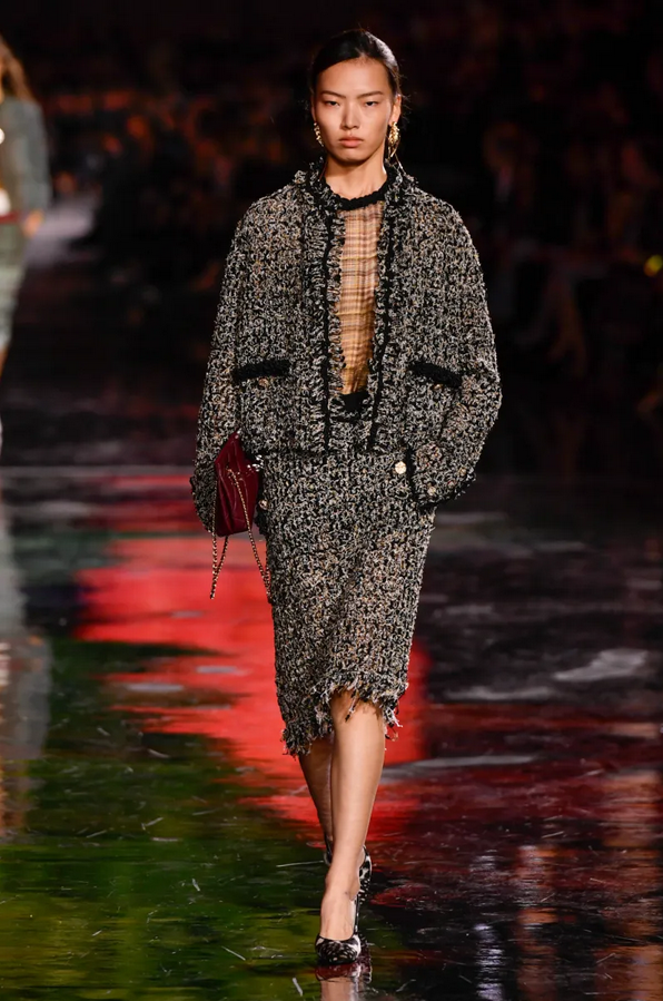 • Transparent tweeds and knits layered: pieces with transparency over tweed or structural undergarments create depth and duality.
